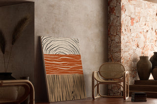 Maalaus taulu – Aurinko savesta | Tyylitelty maisemajuliste saviväreissä ja luonnonsävyissä | Boheemi sisustus olohuoneeseen tai makuuhuoneeseen