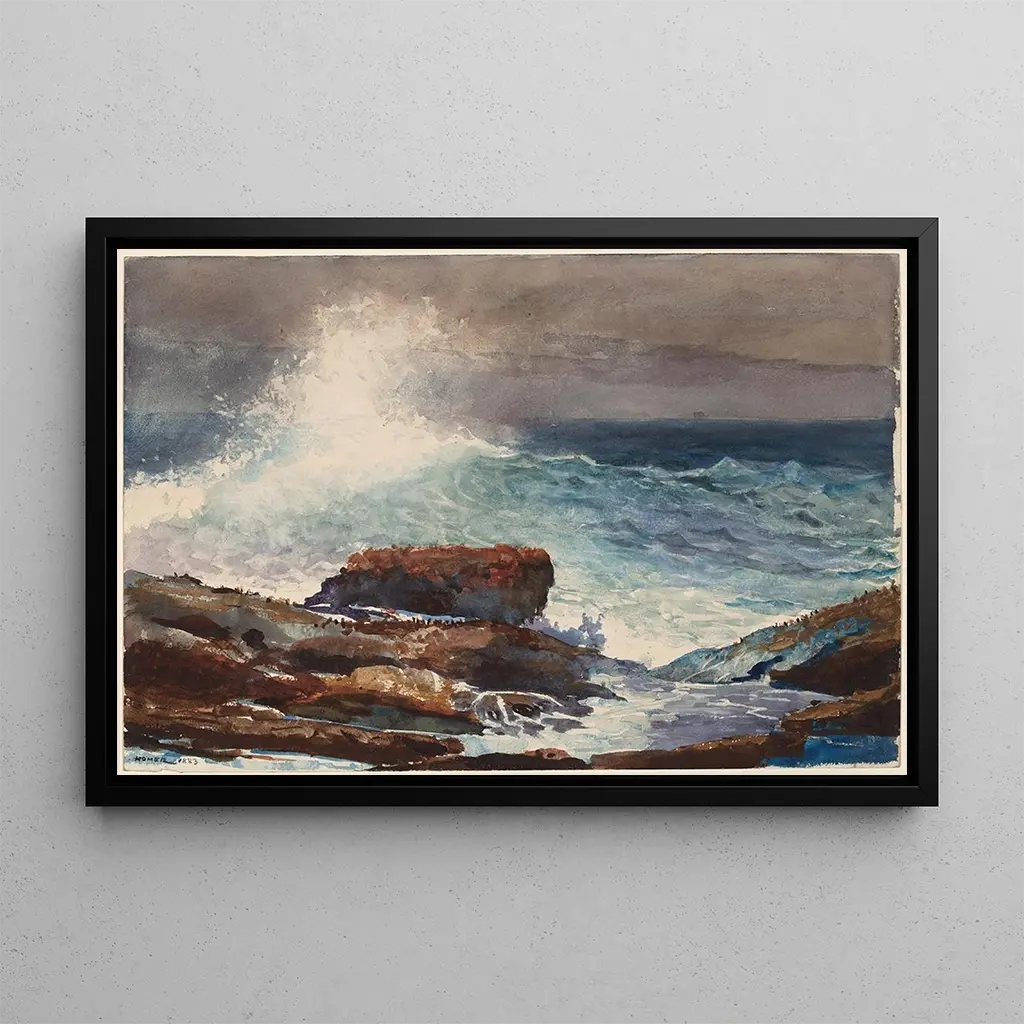 Kohteessa "Marée Montante à Scarboro, Maine" Winslow Homer vangitsee luonnon liikkeen ytimen. Tämä taulu, jonka emotionaalinen intensiteetti on käsin kosketeltava, kuvaa myrskyistä merta, jossa aallot murskaantuvat voimalla kallioihin. Elävät värit, syvän sinisestä kirkkaisiin vihreisiin, luovat sekä dramaattisen että rauhoittavan ilmapiirin. Homerin hallitsema akvarellitekniikka mahdollistaa veden sulavuuden ja taivaan kirkkauden välittämisen, tarjoten kutsun luonnonvoimien tarkasteluun. Teos herättää intiimin yhteyden ihmisen ja ympäristön välillä, mikä on taiteilijan sydäntä lähellä oleva teema.