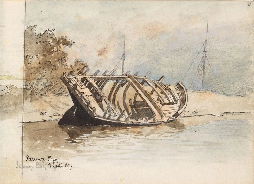 La toile "Depuis la baie de Sannox, Arran" de Hans Gude nous transporte au cœur d'un paysage côtier majestueux. Avec des nuances de bleu profond et des touches de vert éclatant, l'œuvre évoque une atmosphère sereine et contemplative. Les vagues se brisent doucement sur les rochers, tandis que les montagnes se dressent fièrement en arrière-plan, enveloppées d'une brume légère. La technique de Gude, mêlant réalisme et romantisme, capte la beauté brute de la nature, invitant le spectateur à ressentir la fraîcheur de l'air marin et la tranquillité de ce lieu idyllique.