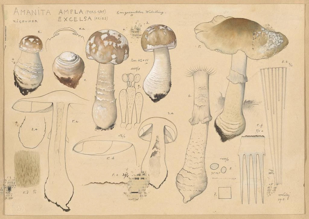La reproduction de "Amanita ampla Pers. 1801 excelsa Fries" nous plonge dans l'univers fascinant des champignons, où chaque détail est soigneusement observé. Cette œuvre, riche en couleurs terreuses et en nuances délicates, met en avant la beauté singulière de l'Amanite, une espèce souvent méconnue. La technique de Fries, qui allie précision scientifique et sensibilité artistique, crée une atmosphère à la fois intrigante et apaisante. Le tableau invite à une contemplation attentive, révélant la complexité et la diversité du monde fongique.