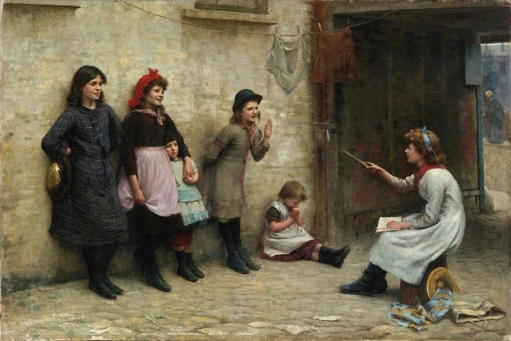 Frederick Brown, actif à la fin du XIXe siècle et au début du XXe siècle, est un peintre britannique dont le travail reflète les changements sociaux de son époque. Élevé dans une période où l'éducation des femmes commençait à être valorisée, il a souvent représenté des thèmes liés à l'éducation et à la vie quotidienne. Son style, ancré dans le réalisme, permet de capturer des moments authentiques de la vie, tout en mettant en lumière les luttes et les triomphes des femmes. "Candidats pour Girton" est emblématique de cette période de transition, où l'art devient un miroir des évolutions sociétales.