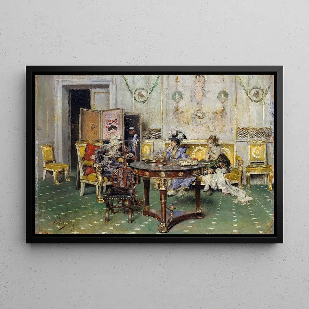 Commérages : elävä ja tyylikäs elämäkohtaus Kohteessa "Commérages" Giovanni Boldini vangitsee aikakauden olemuksen vertaansa vailla olevalla hallinnalla. Taulu kuvaa vilkasta kohtaa, jossa tyylikkäästi pukeutuneet henkilöt käyvät vilkasta keskustelua. Kirkkaat värit ja sulavat siveltimenvedot luovat dynaamisuuden ja hienostuneisuuden ilmapiirin. Hienostuneet yksityiskohdat puvuissa ja kasvoissa paljastavat huolellisen huomion valoon ja varjoon, luoden syvyyttä, joka vetää katseen puoleensa. Tämä teos on todellinen kutsu sukeltaa Belle Époque -sosiaaliseen maailmaan, jossa jokainen hahmo vaikuttaa kertovan tarinan. Giovanni Boldini : modernien eleganssien muotokuvamaalari Giovanni Boldini, syntynyt vuonna 1842 Ferrarassa, on ikoninen hahmo impressionismin ja muotokuvamaalauksen liikkeessä 1800-luvun lopulla. Hän on vaikuttanut suurten mestareiden kuten Manetin ja Degasin vaikutuksesta, ja erottuu loistokkaalla tyylillään sekä kyvyllään vangita liike. Hänen teoksensa, usein keskittyen korkeaan yhteiskuntaan, todistavat ajasta, jolloin eleganssi ja hienostuneisuus olivat huipussaan. Boldini onnistui vakiinnuttamaan asemansa Pariisin salonkeissa, ja hänestä tuli aikansa julkkisten muotokuvamaalari. Hänen taiteellinen perintönsä jatkuu, tehden hänestä keskeisen viitteen aikansa estetiikan ymmärtämisessä. Monipuolinen sisustuksellinen taidegrafiikka "Commérages" taidegrafiikan reproduktio on erinomainen valinta sisustuksen rikastuttamiseen. Olipa kyseessä olohuone, toimisto tai makuuhuone, tämä taulu lisää hienostuneisuutta ja dynaamisuutta. Taidegrafiikan laatu takaa yksityiskohtien ja värejen uskollisuuden alkuperäiselle teokselle, jolloin voit nauttia Boldinin taiteesta kodissasi. Tämä taulun esteettinen viehätys ei jää huomaamatta vieraidesi keskuudessa, ja se luo lämpimän ja kutsuvan ilmapiirin.