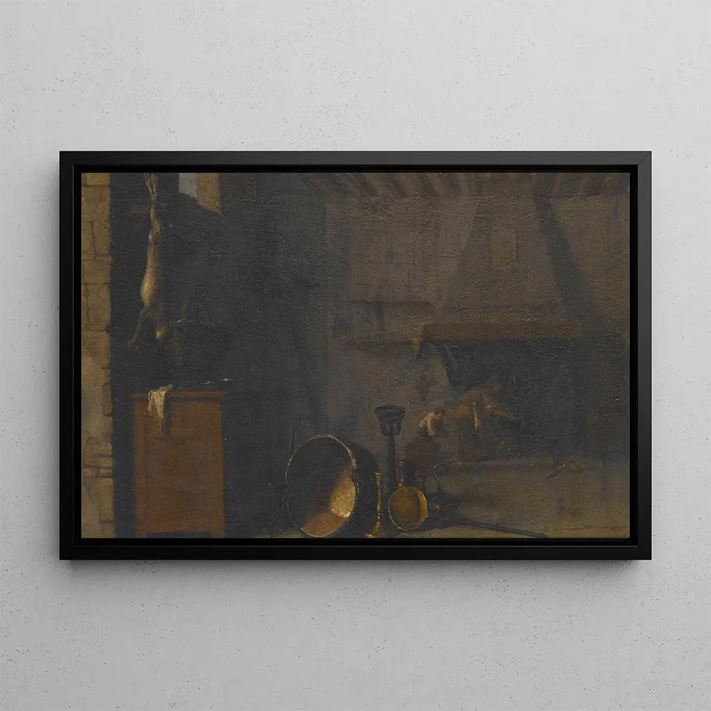Cuisine avec lièvre : une scène de vie animée et gourmande Dans "Cuisine avec lièvre", Sébastien Bourdon nous plonge dans une atmosphère chaleureuse et vivante, où les détails culinaires s'entremêlent avec une composition harmonieuse. Les teintes chaudes, allant des bruns terreux aux dorés éclatants, évoquent la richesse des ingrédients et l'art de la gastronomie. La lumière, subtilement manipulée, crée des ombres douces qui ajoutent de la profondeur à la scène. Chaque élément, du lièvre suspendu à la poterie, raconte une histoire, invitant le spectateur à s'imaginer dans cette cuisine animée, où l'odeur des plats mijotés flotte dans l'air. Sébastien Bourdon : un maître du XVIIe siècle Sébastien Bourdon, peintre français du XVIIe siècle, est reconnu pour son habileté à capturer des scènes de la vie quotidienne avec une précision remarquable. Influencé par le style baroque, il a su allier réalisme et expressivité, faisant de ses œuvres des témoignages précieux de son époque. Bourdon a également été influencé par des maîtres tels que Caravage, ce qui se reflète dans l'utilisation dramatique de la lumière et des ombres. Sa carrière, marquée par des voyages en Italie et des commandes royales, témoigne de son importance dans le paysage artistique de son temps, faisant de lui un représentant clé du classicisme français. Une acquisition décorative aux multiples atouts La reproduction de "Cuisine avec lièvre" est une pièce décorative qui saura enrichir n'importe quel espace, que ce soit un salon, une salle à manger ou un bureau. Sa qualité d'impression et sa fidélité aux détails originaux garantissent une œuvre d'art qui attire le regard et suscite des conversations. Avec ses couleurs chaleureuses et son ambiance conviviale, ce tableau apporte une touche d'élégance rustique à votre intérieur. En choisissant cette toile, vous optez pour une œuvre qui non seulement embellit votre décor, mais évoque également un amour pour la gastronomie et la vie quotidienne, faisant de chaque regard un moment de contemplation.