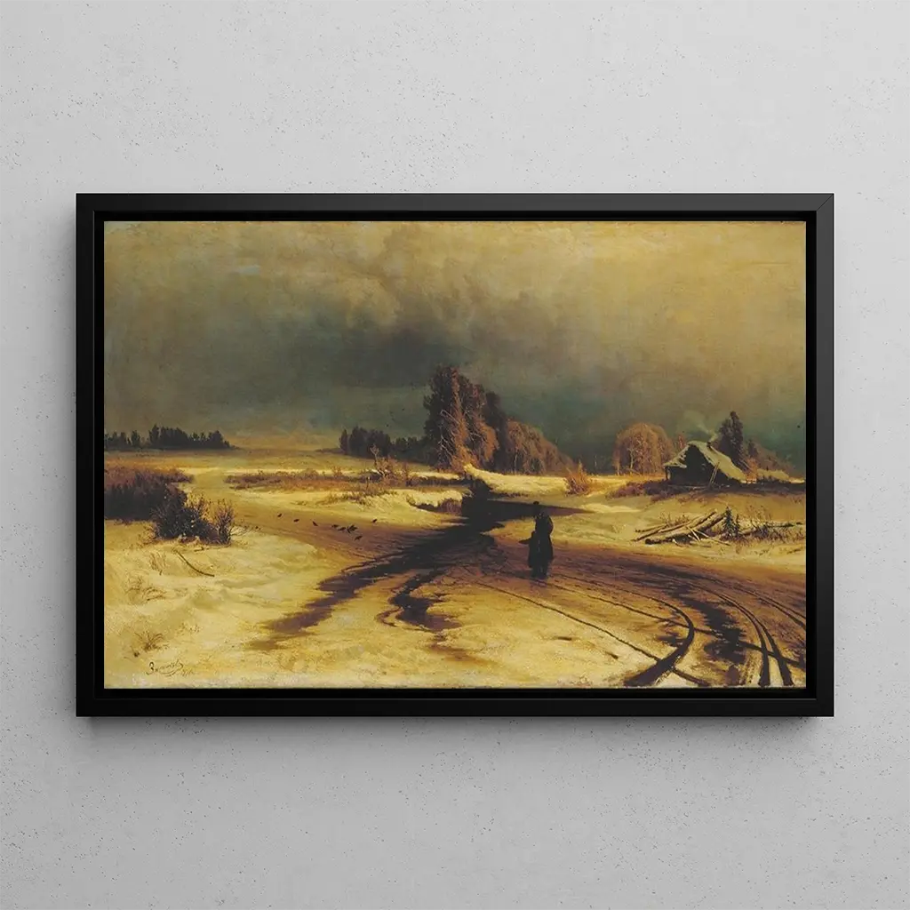 La toile "Dégel" de Fyodor Vasilyev est une représentation vibrante de la nature en éveil, marquant la transition entre l'hiver et le printemps. Les teintes chaudes et lumineuses évoquent la douceur des premiers jours ensoleillés, tandis que les détails minutieux des paysages enneigés en train de fondre apportent une dimension réaliste à l'œuvre. La technique de Vasilyev, qui mêle impressionnisme et réalisme, crée une atmosphère dynamique et vivante, où chaque coup de pinceau semble capturer le mouvement de la nature. Cette œuvre invite à célébrer le renouveau et la beauté éphémère de la saison.