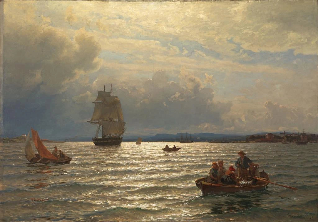 Depuis l'anse d'Oslo : une évasion vers les rivages norvégiens Dans l'œuvre "Depuis l'anse d'Oslo", Hans Gude nous transporte au cœur d'un paysage marin d'une beauté saisissante. La toile se distingue par ses nuances de bleu, évoquant les reflets de l'eau sous la lumière du jour. Les touches de vert des collines environnantes et les nuages cotonneux dans le ciel créent une atmosphère paisible et sereine. La technique de Gude, qui mêle habilement le réalisme à une certaine poésie, invite le spectateur à contempler la nature dans toute sa splendeur. Chaque détail, des voiles blanches des bateaux aux rochers émergeant de l'eau, contribue à une harmonie visuelle qui fait de cette reproduction un véritable chef-d'œuvre. Hans Gude : un maître du paysage romantique Hans Gude, peintre norvégien du XIXe siècle, est reconnu pour ses paysages qui capturent la majesté des fjords et des côtes scandinaves. Influencé par le mouvement romantique, il a su marier la précision du détail à une vision idéalisée de la nature. Gude a étudié à l'Académie royale des beaux-arts de Copenhague et a été fortement inspiré par les paysages de son pays natal. Son œuvre a eu un impact significatif sur l'art norvégien, et il est souvent considéré comme l'un des pionniers du paysage moderne en Norvège. "Depuis l'anse d'Oslo" témoigne de son talent à immortaliser la beauté naturelle, tout en reflétant les préoccupations esthétiques de son époque. Une acquisition décorative aux multiples atouts La reproduction de "Depuis l'anse d'Oslo" est une pièce décorative qui s'intègre parfaitement dans divers espaces, que ce soit un salon, un bureau ou une chambre. Sa qualité d'impression et sa fidélité aux couleurs originales garantissent un attrait esthétique indéniable. En choisissant ce tableau, vous apportez une touche d'élégance et de sérénité à votre intérieur, tout en célébrant l'héritage artistique d'un grand maître. Cette toile invite à la rêverie et à l'évasion, faisant d'elle un choix idéal pour ceux qui apprécient la beauté des paysages naturels.