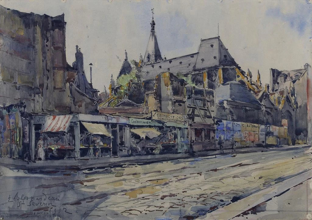 Henri-Marie-Georges Bernardeau, peintre français du début du XXe siècle, est connu pour ses œuvres qui célèbrent le patrimoine architectural. Influencé par le mouvement romantique, il s'est attaché à immortaliser des édifices emblématiques, tels que l'Église Saint-Séverin. Son style, mêlant précision et sensibilité, témoigne d'un profond respect pour l'histoire et la culture. À travers ses toiles, Bernardeau nous offre une vision poétique de ces monuments, faisant de lui un acteur essentiel de la préservation de notre héritage architectural.