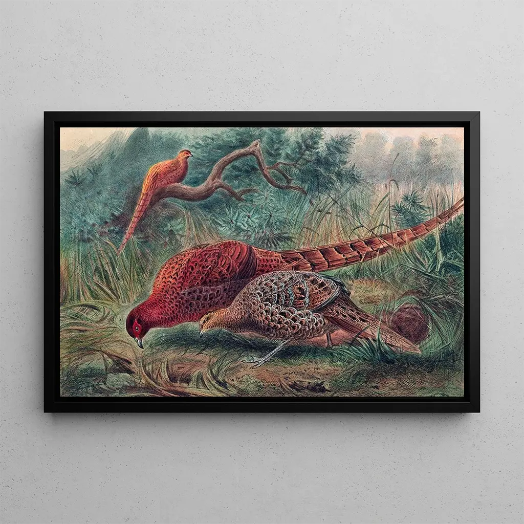Joseph Wolfin teos "Faisan de Soemmerring" on elävä taidegrafiikka, joka vangitsee eläinmaailman loiston. Kompositio esittelee majesteettisen faisanin, jonka hohtavat höyhenet kimaltelevat valossa, paljastaen rikkaan väripaletin, joka ulottuu kullasta smaragdinvihreään. Wolfin hallitsema akvarellitekniikka antaa kokonaisuudelle keveyttä, kun taas epätarkka tausta viittaa luonnolliseen ympäristöön, lähes unenomaisiin. Tämä taidegrafiikan välittämä tunnelma kutsuu rauhalliseen pohdintaan, jossa katsoja voi melkein kuulla lintujen laulun ja tuntea kevyen tuulen.