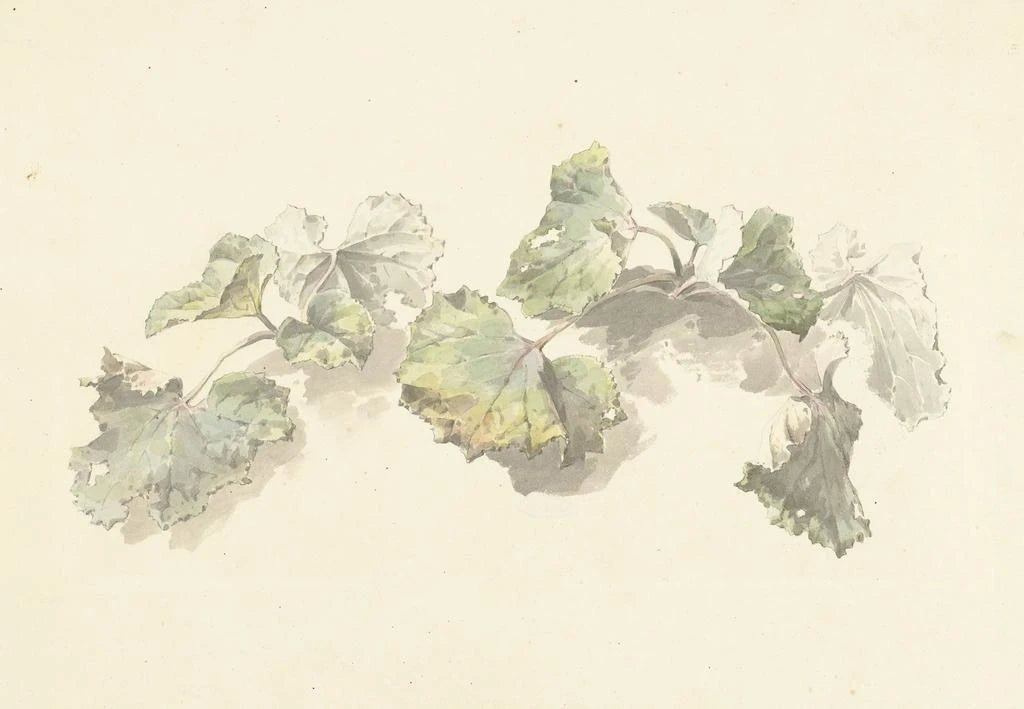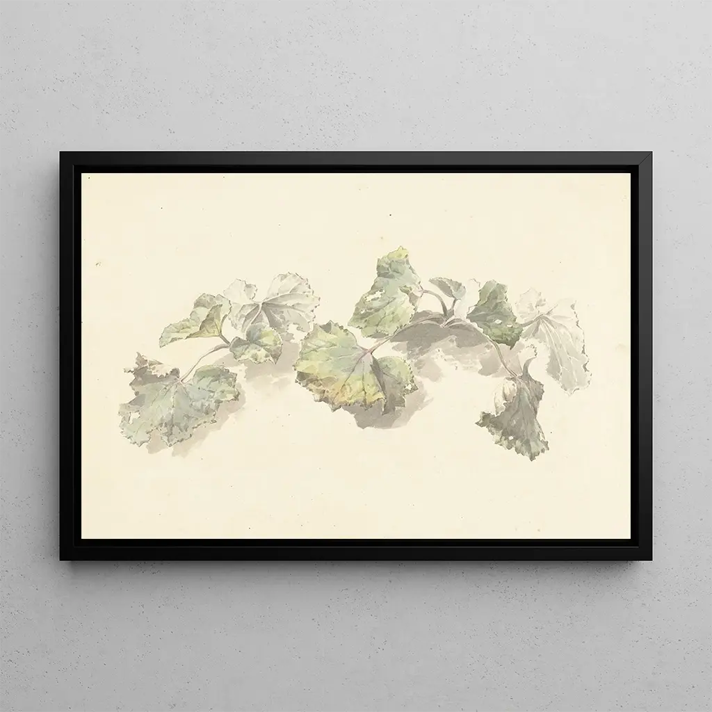 Josephus Augustus Knipin teos "Lehti-tutkimus" kuvaa ohikiitävän luonnon kauneutta huolellisen koostelman kautta. Lehden yksityiskohdat, jotka on toteutettu poikkeuksellisella tarkkuudella, vangitsevat valon ja varjon, luoden rauhallisen ja mietiskelevän tunnelman. Vihreän, keltaisen ja ruskean sävyt sekoittuvat harmonisesti, tarjoten paletin, joka muistuttaa vuodenaikojen vaihtelusta. Vesiväritekniikka, jota käytetään hienovaraisesti, mahdollistaa lehtien keveyden ja läpinäkyvyyden välittämisen, kutsuen katsojan sukeltamaan rikkaaseen ja elävään kasvi-maailmaan.