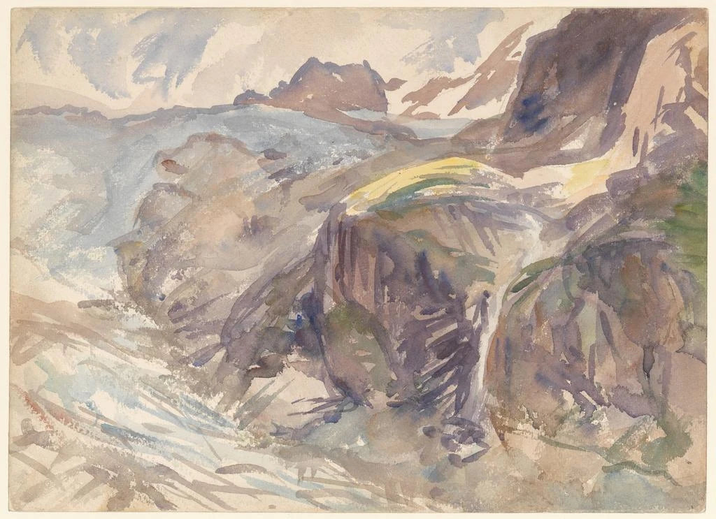 John Singer Sargent, actif à la fin du XIXe et au début du XXe siècle, est l'un des portraitistes les plus célèbres de son temps, mais il a également réalisé des paysages remarquables. Influencé par le mouvement impressionniste, Sargent a su capturer la lumière et l'atmosphère de ses sujets, qu'ils soient humains ou naturels. Sa capacité à représenter la texture et la couleur a fait de lui un artiste incontournable. "Glacier" témoigne de son talent pour immortaliser des paysages grandioses, tout en reflétant une époque où l'exploration des régions éloignées était en plein essor.