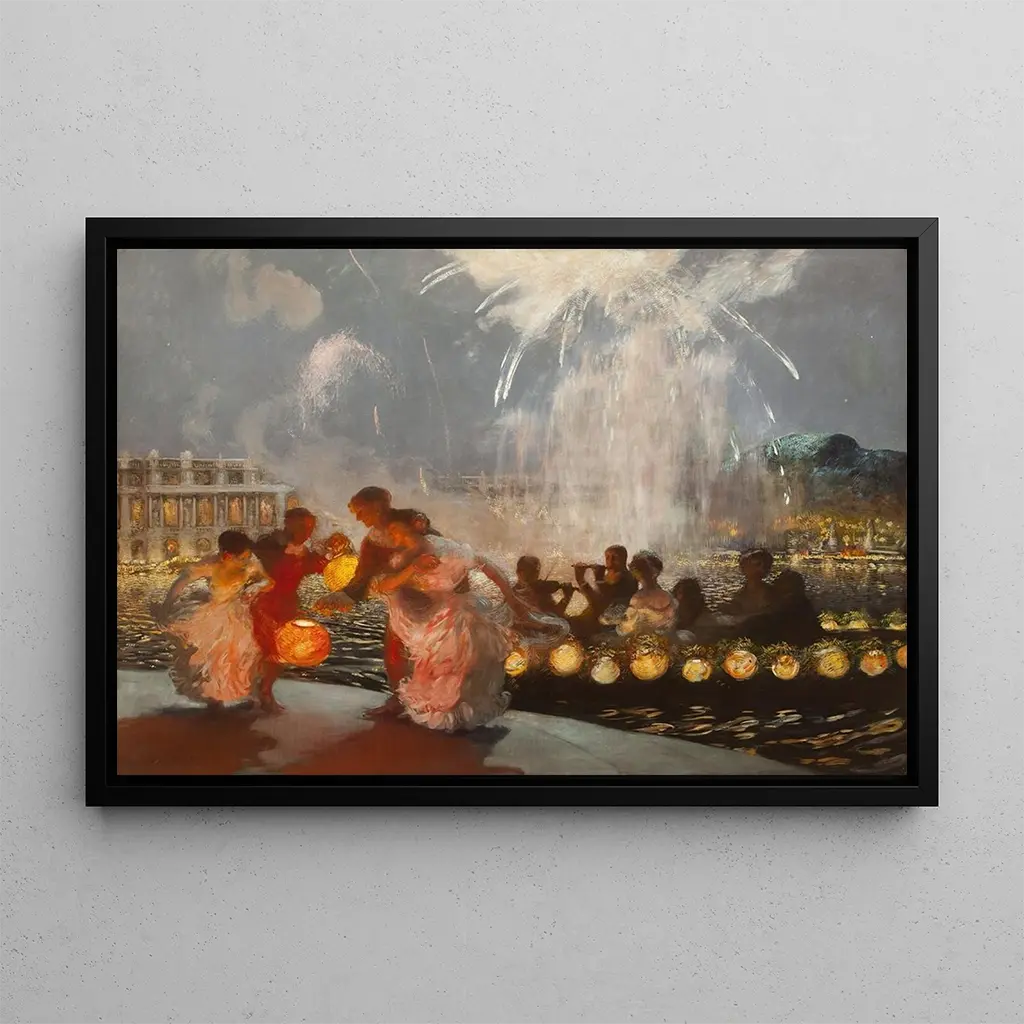 La fête joyeuse : elämän ja värien juhla La fête joyeuse de Gaston La Touche on elävä taidegrafiikka, joka herättää ilon ja huolettomuuden tunteet. Hahmot, jotka ovat osana juhlavaa ilmapiiriä, näyttävät tanssivan näkymättömän melodian tahdissa. Värien loisto, syvistä punaisista kirkkaisiin keltaisiin, sekoittuu harmonisesti, luoden liikkeen ja ilon tunteen. La Touche'n impressionistinen tekniikka, dynaamisilla siveltimenvedoillaan, herättää tämän kohtauksen eloon, antaen katsojalle mahdollisuuden tuntea juhlinnan energia. Teos kutsuu mietiskelyyn, jossa jokainen yksityiskohta kertoo tarinan ja jossa valo näyttelee tärkeää roolia tämän riemun lavastuksessa. Gaston La Touche : ranskalaisen impressionismin mestari Gaston La Touche, syntynyt vuonna 1854, on ranskalaisen impressionismin ikoniartisti. Hänet vaikutti sellaiset mestarit kuin Monet ja Renoir, ja hän kehitti ainutlaatuisen tyylin, joka keskittyi arkipäivän kohtauksiin ja maalaismaisemiin. La Touche oli myös aktiivinen Nabis-liikkeessä, sisällyttäen symbolistisia elementtejä työhönsä. Hänen teoksensa, vaikka vähemmän tunnettu kuin hänen aikalaistensa, jätti jälkensä aikakauteensa kyvyllään vangita valo ja tunne. La fête joyeuse on täydellinen esimerkki hänen lahjakkuudestaan, korostaen ilon ja harmonian merkitystä ihmisen elämässä. Monipuolinen koristeellinen taidegrafiikka La reproduction de La fête joyeuse on koristeellinen taidegrafiikka, joka kaunistaa minkä tahansa sisätilan, olipa kyseessä olohuone, toimisto tai makuuhuone. Sen tulostuslaatu takaa merkittävän uskollisuuden alkuperäisen teoksen väreille ja yksityiskohdille, mahdollistaen nauttimisen juhlallisesta ilmapiiristä, jonka se välittää. Sisällyttämällä tämän taulun sisustukseesi, tuot tilaan eleganssia ja dynaamisuutta. Tämän kankaan esteettinen viehätys tekee siitä ihanteellisen valinnan niille, jotka haluavat luoda lämpimän ja kutsuvan tunnelman, samalla juhlistaen impressionismin taidetta.