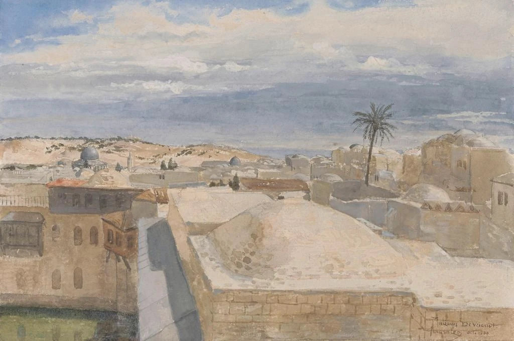 Juliaan De Vriendt, peintre belge du XIXe siècle, est connu pour ses œuvres qui explorent les thèmes de l'Orientalisme et de l'histoire. Sa passion pour les voyages et sa fascination pour les cultures orientales influencent grandement son travail. "Jérusalem 2" s'inscrit dans une période où l'artiste cherche à représenter des lieux chargés de symbolisme et de spiritualité. Son approche unique, mêlant réalisme et romantisme, fait de lui une figure importante dans le panorama artistique de son temps, contribuant à l'émergence d'un nouveau regard sur des sujets historiques et culturels.