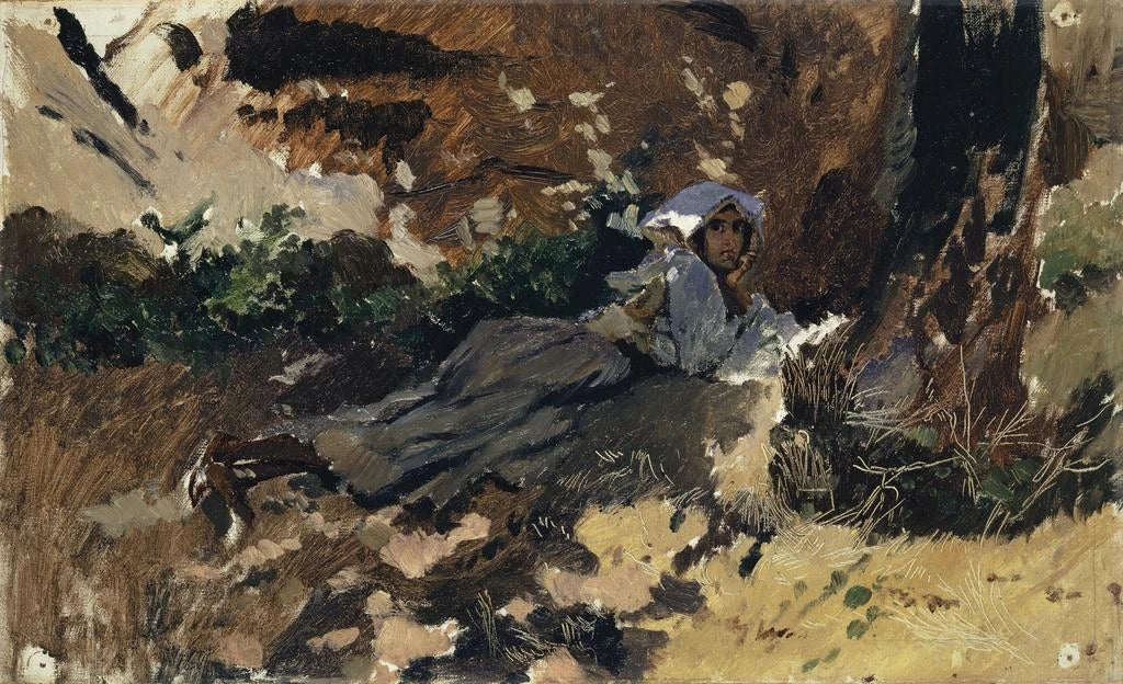 Dans cette reproduction de l'œuvre "Jeune femme allongée dans le bois", Frank Buchser capture un moment de tranquillité et d'intimité. La composition met en avant une jeune femme, paisiblement allongée sur un lit de feuilles, entourée par la verdure luxuriante d'une forêt. Les couleurs douces et naturelles, allant des verts apaisants aux bruns chaleureux, créent une atmosphère de calme et de rêverie. La technique de l'artiste, qui mêle habilement le réalisme à une touche impressionniste, donne vie à cette scène, invitant le spectateur à s'évader dans ce havre de paix.