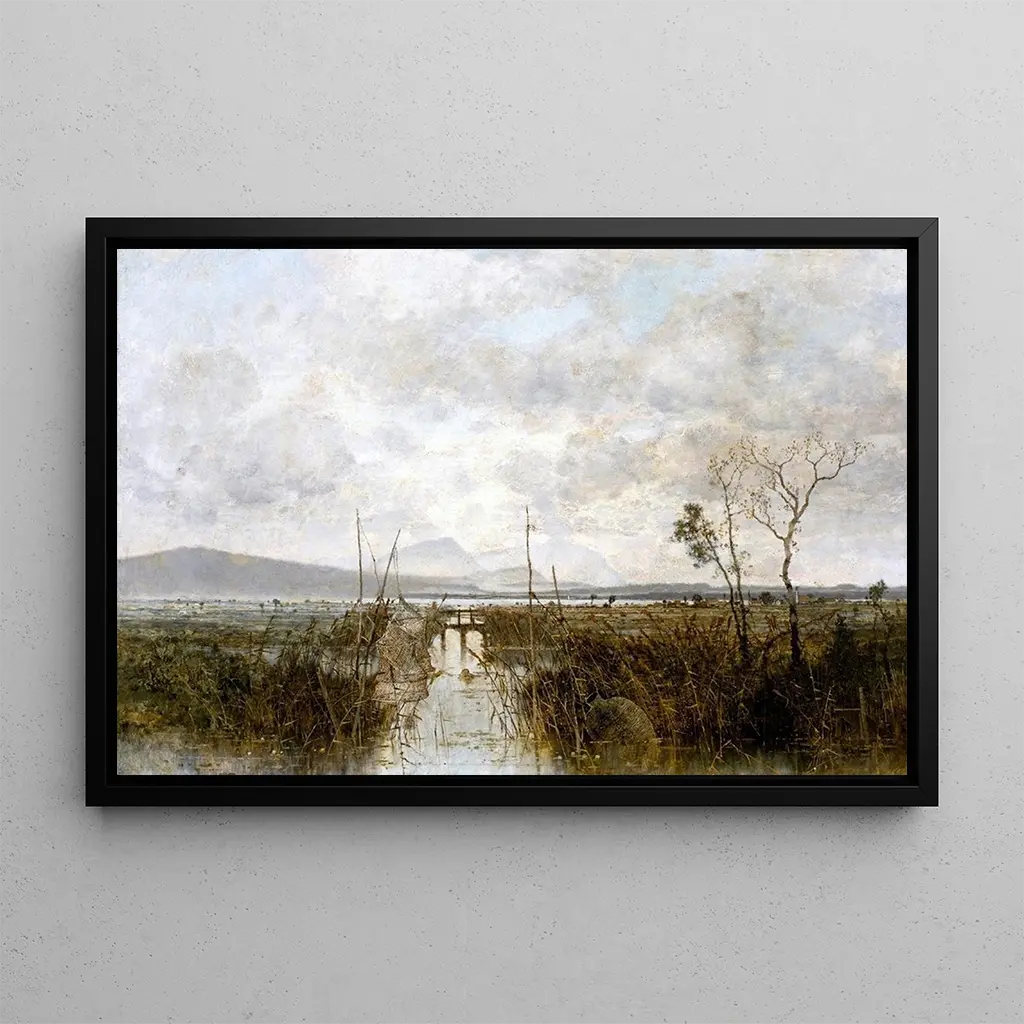 Päästöt rannikkoalueella järvellä: sukellus vesiluontoon Taidegrafiikka "Päästöt rannikkoalueella järvellä" Karl Heffneriltä kuvaa rauhallista kohtausta, jossa luonto ja ihminen elävät harmonisesti yhdessä. Vihreän ja sinisen sävyt sekoittuvat luoden rauhallisen tunnelman, kun taas veden heijastukset lisäävät koko kokonaisuuteen lähes taianomaisen ulottuvuuden. Taiteilijan käyttämä hienovarainen sivellinote, joka tuo eloon vesikasvien ja kalojen yksityiskohdat, jotka elävät tässä ekosysteemissä. Tämä taidegrafiikka kutsuu katsojan pysähtymään ja unelmoimaan, kuljettaen hänet maailmaan, jossa aika tuntuu pysähtyneen. Karl Heffner: luonnonkauneuden todistaja Karl Heffner, 1800-luvulla aktiivinen taiteilija, liittyy usein romantiikan liikkeeseen, joka arvostaa luontoa ja maisemia. Hän sai vaikutteita aikansa suurilta mestareilta ja kehitti ainutlaatuisen tyylin, joka korostaa maaseudun ja vesistöjen kauneutta. Vaikka hän ei ole yhtä tunnettu kuin jotkut hänen aikalaistensa, Heffner jätti merkittävän jäljen maisemamaalauksen alalle. Hänen työnsä kertoo ajasta, jolloin harmonia luonnon kanssa oli taiteellisten pyrkimysten ytimessä, ja hänen teoksensa inspiroivat yhä nykytaiteen harrastajia. Monipuolinen sisustustarjotin Taidegrafiikan "Päästöt rannikkoalueella järvellä" reproduktio on ihanteellinen sisustuselementti, joka tuo rauhallisuuden tunnelman kotiisi. Olipa kyseessä olohuone, toimisto tai makuuhuone, tämä taidegrafiikka sopii täydellisesti erilaisiin sisustustyyleihin, klassisesta nykyaikaiseen. Sen reproduktiokorkeuden ansiosta se säilyttää alkuperäisen teoksen värit ja yksityiskohdat, tarjoten samalla esteettisen viehätyksen. Valitsemalla tämän taidegrafiikan, valitset teoksen, joka ei ainoastaan kaunista tilaasi, vaan myös luo syvän yhteyden luontoon.