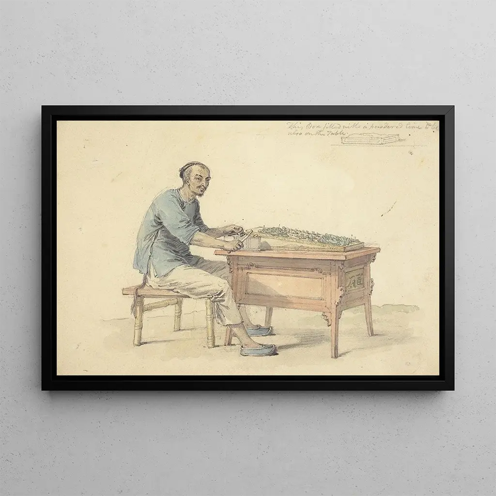 "Un paysan chinois vendant du bétel" -taidegrafiikan kopio on ihanteellinen koriste-esine rikastuttamaan sisustustasi, olipa kyseessä olohuone, toimisto tai makuuhuone. Sen tulostuslaatu takaa merkittävän uskollisuuden alkuperäisen teoksen väreille ja yksityiskohdille, tuoden eksoottisuuden ja aitouden lisää sisustukseesi. Tämä taidegrafiikka, jonka esteettinen vetovoima on kiistaton, muodostuu keskipisteeksi, joka herättää uteliaisuutta ja ihailua, samalla kutsuen katselemaan kiinalaisia perinteitä ja kulttuuria.