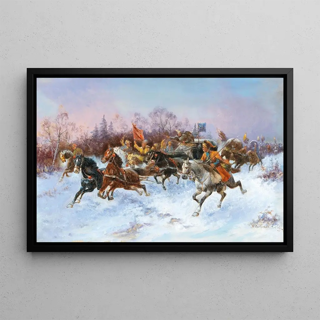Taidegrafiikka "Transport d'or en Sibérie" Adolf Baumgartner-Stoiloffilta kuvaa kiehtovaa kohtausta, jossa kimalteleva kulta kontrastoi kylmien ja ankarien Siperian maisemien kanssa. Rikkaat ja eloisat värit, jotka vaihtelevat loistavasta kullasta syviin sinisiin sävyihin, luovat sekä majesteettisen että salaperäisen tunnelman. Baumgartner-Stoiloffin tekniikka, joka yhdistää realismia ja impressionistisia kosketuksia, mahdollistaa ihmisen ponnistelun ja luonnon kohtaamisen kokemisen. Katse kiinnittyy liikkeessä oleviin hahmoihin, jotka ovat täynnä aarteita ja jotka vaikuttavat melkein tanssivan lumen ja tuulen rytmissä.