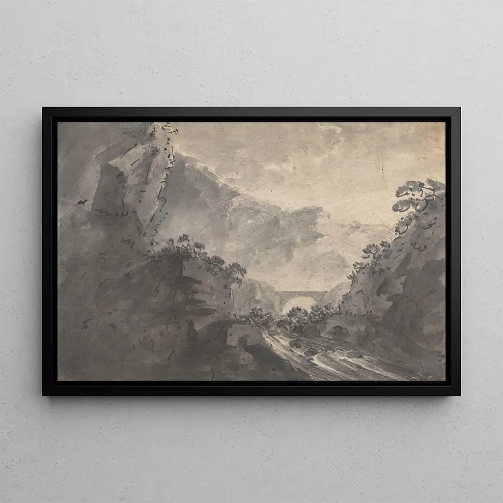 Tässä kiehtovassa teoksessa William Gilpin kuljettaa meidät idyllisen maiseman sydämeen, jossa luonto kukoistaa kaikessa loistossaan. Värikkäät, eloisat värit, aina rehevistä vihreistä rauhoittaviin sinisiin, luovat rauhan ja ihailun ilmapiirin. Vesiväritekniikka, hienovaraisine sävyineen, mahdollistaa valon lähes taianomaisen välittymisen, korostaen puiden ja kukkuloiden yksityiskohtia. Tämä taulu, todellinen mietiskelyn kutsu, herättää sisäisen rauhan ja harmonian tunteen luonnon kanssa, muistuttaen ympäröivien maisemien kauneudesta.