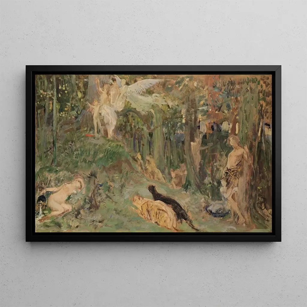 La Poésie dans l'Antiquité : une ode à la beauté des mots "La Poésie dans l'Antiquité" de Luc-Olivier Merson est une œuvre qui célèbre l'art des mots et la beauté de la création littéraire. À travers une composition riche et harmonieuse, Merson évoque des figures emblématiques de la poésie antique, utilisant des couleurs vives et des détails minutieux pour capturer l'essence de cette époque. L'atmosphère qui se dégage de ce tableau est à la fois inspirante et contemplative, invitant le spectateur à plonger dans l'univers poétique des anciens. La technique de Merson, alliant classicisme et romantisme, donne vie à une scène où la poésie devient une véritable expérience visuelle. Luc-Olivier Merson : l'artiste au service de la culture classique Luc-Olivier Merson, peintre et illustrateur du XIXe siècle, s'est distingué par son engagement envers la culture classique et son amour pour la littérature. Formé à l'École des beaux-arts de Paris, il a été influencé par les grands maîtres de la peinture historique et par le mouvement romantique. Merson a su allier son talent artistique à une profonde connaissance des textes antiques, créant ainsi des œuvres qui rendent hommage à la richesse de la poésie. Son travail, souvent empreint de symbolisme, témoigne d'une époque où l'art et la littérature se rejoignent pour célébrer la beauté et l'émotion. Une acquisition décorative aux multiples atouts La reproduction "La Poésie dans l'Antiquité" est un choix parfait pour embellir votre espace de vie. Que ce soit dans un bureau, un salon ou une bibliothèque, cette toile apporte une touche de sophistication et d'inspiration. Sa qualité d'impression assure une fidélité exceptionnelle aux nuances et aux détails de l'œuvre originale, permettant de profiter pleinement de son attrait esthétique. En intégrant cette reproduction dans votre décoration, vous créez un environnement qui stimule la créativité et l'amour des lettres, tout en rendant hommage à l'héritage culturel de l'Antiquité.