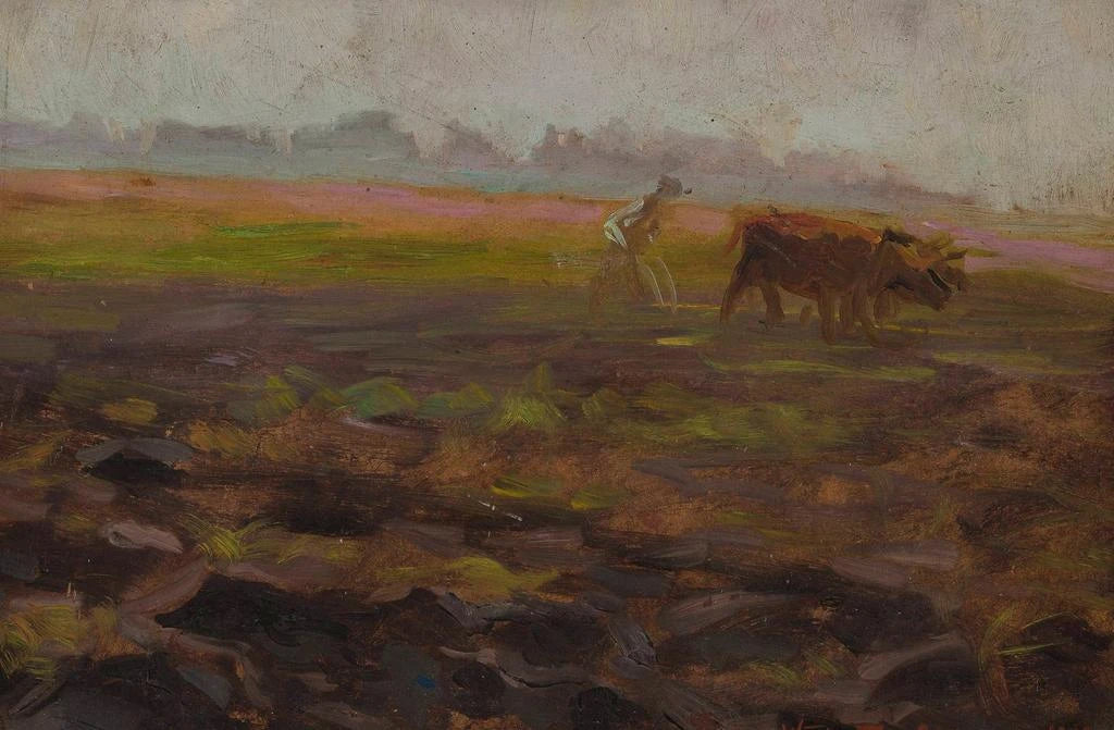 Dans cette œuvre emblématique, Władysław Ostrowski capture la beauté simple et puissante du travail agricole. La composition met en avant des bœufs majestueux, tirant une charrue à travers un paysage verdoyant. Les couleurs terreuses et les nuances de vert évoquent la fertilité de la terre, tandis que la lumière douce du soleil crée une atmosphère paisible. La technique de peinture à l'huile permet de rendre les détails des animaux et du sol avec une grande précision, plongeant le spectateur dans une scène de la vie quotidienne à la campagne. Ce tableau est une véritable invitation à la contemplation de la nature et du labeur humain.