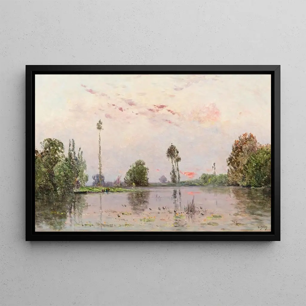 La reproduction de "L'Étang au crépuscule" est un choix idéal pour embellir votre intérieur, que ce soit dans un salon, un bureau ou une chambre. Sa qualité d'impression garantit une fidélité remarquable aux couleurs et aux détails de l'œuvre originale, apportant une touche d'élégance à votre décoration. Ce tableau, avec son ambiance apaisante, crée une atmosphère chaleureuse et accueillante, propice à la détente. En choisissant cette toile, vous optez pour une pièce d'art qui non seulement enrichit votre espace, mais également suscite des conversations autour de la beauté de la nature.