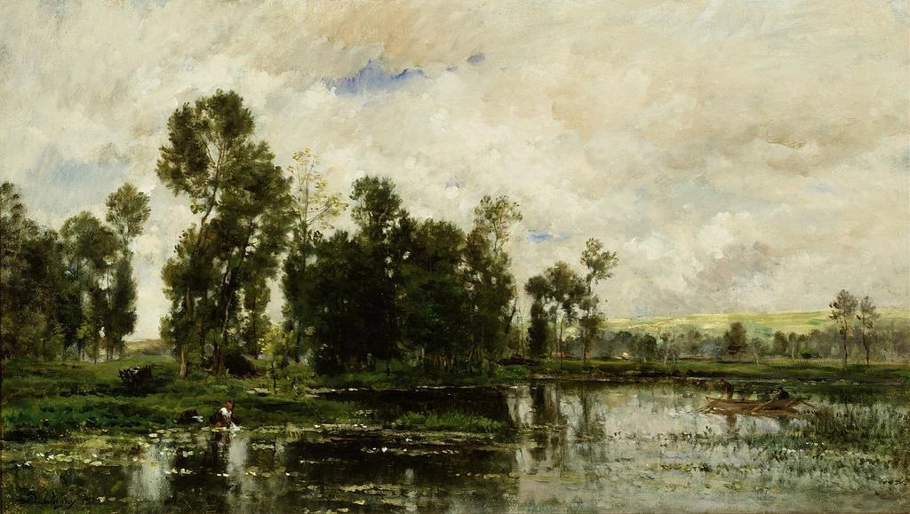 Le Bord de l'étang : une sérénité bucolique à portée de main Le tableau "Le Bord de l'étang" de Charles François Daubigny évoque une atmosphère paisible et contemplative. La composition s'articule autour d'un étang tranquille, entouré de verdure luxuriante et d'arbres majestueux. Les couleurs douces et naturelles, allant des verts apaisants aux reflets dorés du soleil couchant, créent une harmonie visuelle qui invite à la rêverie. La technique de la peinture à l'huile, maîtrisée par Daubigny, permet de capturer la lumière et les nuances de la nature avec une finesse remarquable. Ce tableau, véritable ode à la beauté des paysages ruraux, transporte le spectateur dans un monde de sérénité. Charles François Daubigny : un pionnier du paysage impressionniste Charles François Daubigny, actif au XIXe siècle, est reconnu comme l'un des précurseurs du mouvement impressionniste. Influencé par les maîtres de la peinture de paysage, il développe un style unique qui se concentre sur la lumière et la nature. Sa carrière débute dans un contexte où la peinture de paysage connaît un essor, et il se distingue par sa capacité à capturer des scènes de la vie quotidienne en plein air. Daubigny a également eu un impact sur d'autres artistes, notamment Vincent van Gogh, qui admire son approche de la couleur et de la lumière. Son œuvre "Le Bord de l'étang" témoigne de son talent et de son engagement envers la représentation de la nature. Une acquisition décorative aux multiples atouts La reproduction du tableau "Le Bord de l'étang" est une pièce décorative idéale pour enrichir votre intérieur. Que ce soit dans un salon, un bureau ou une chambre, cette toile apporte une touche de sérénité ja [[reproduction]] d'élégance. La qualité de l'impression garantit une fidélité remarquable aux couleurs et aux détails de l'œuvre originale, permettant ainsi de profiter de toute la beauté de cette scène bucolique. L'attrait esthétique de cette reproduction en fait un choix parfait pour ceux qui souhaitent créer une ambiance apaisante et inspirante dans leur espace de vie.