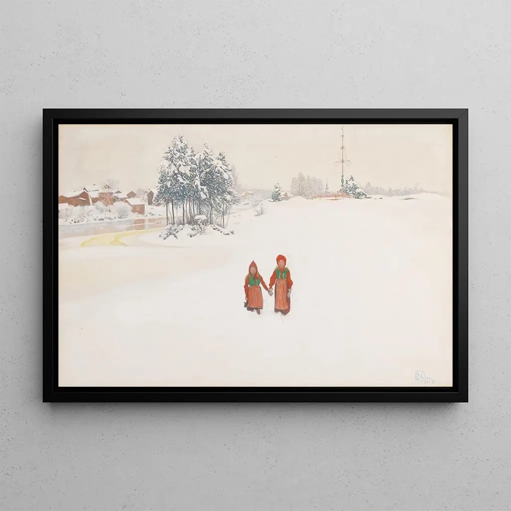 Dans la neige : une scène hivernale empreinte de douceur La taidegrafiikka de Dans la neige nous transporte dans un paysage hivernal enchanteur, où la neige recouvre délicatement le sol et les arbres. Les teintes douces de blanc et de bleu créent une atmosphère paisible, tandis que les personnages, habillés chaudement, évoquent une sensation de chaleur humaine au cœur du froid. La technique de Carl Larsson, qui mêle aquarelle et dessin, donne vie à cette scène, capturant l’innocence et la joie des enfants jouant dans la neige. Chaque coup de pinceau semble raconter une histoire, invitant à la rêverie et à la contemplation. Carl Larsson : l’âme du mouvement suédois Carl Larsson, figure emblématique du mouvement artistique suédois à la fin du XIXe siècle, est connu pour ses représentations de la vie quotidienne et de la nature. Influencé par le style Art Nouveau, il a su allier tradition et modernité dans ses œuvres. Larsson a consacré une grande partie de sa carrière à immortaliser sa famille et son environnement, faisant de ses tableaux des témoignages touchants de la vie domestique. Son approche intime et chaleureuse a marqué son époque et continue d’inspirer de nombreux artistes contemporains. Une acquisition décorative aux multiples atouts La taidegrafiikka de Dans la neige est un choix décoratif parfait pour apporter une touche de chaleur et de convivialité à votre intérieur. Que ce soit dans un salon, une chambre ou un bureau, cette toile invite à la rêverie et à la nostalgie des hivers passés. Sa qualité d’impression garantit une fidélité aux couleurs et aux détails de l’œuvre originale, tout en offrant un attrait esthétique indéniable. En intégrant cette œuvre dans votre décoration, vous créez un espace accueillant et inspirant, parfait pour se ressourcer et partager des moments en famille ou entre amis.