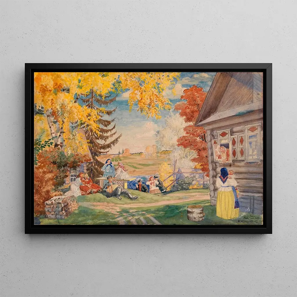 Paysannes Neverov : kunnioitus maaseudun elämälle Taidegrafiikka Paysannes Neverov on teos, joka herättää esiin maaseudun yksinkertaisuuden ja kauneuden. Naishahmojen figuurit, huolellisesti esitettyinä, ovat upotettuina rauhalliseen maaseutumaisemaan. Maalajit ja vihreän sävyt luovat lämpimän ja aitoon tunnelman. Kustodievin tekniikka, joka on luonteeltaan ekspressiivisiä siveltimen vetoja, herättää hahmot ja niiden ympäristön eloon, välittäen liikkeen ja elinvoiman vaikutelman. Tämä kangas kutsuu pohtimaan maalaisten arkea, samalla juhlistaen heidän arvokkuuttaan ja voimaansa. Boris Kustodiev : venäläisen sielun heijastus Boris Kustodiev, joka toimi 1900-luvun alussa, on yksi venäläisen taiteen merkittävimmistä taiteilijoista. Hänen tyylinsä, joka on saanut vaikutteita realismista ja symbolismista, vangitsee venäläisen kulttuurin ja elämän ytimen. Kustodiev on usein tutkinut maaseudun elämään liittyviä teemoja, tuoden esiin kansansa perinteitä ja tapoja. Taidegrafiikka Paysannes Neverov liittyy tähän lähestymistapaan, todistaen taiteilijan rakkautta kansaansa ja maahansa. Hänen teoksensa on peili venäläisestä yhteiskunnasta hänen aikanaan, täynnä tunteita ja värejä. Monipuolinen koristeellinen hankinta Tämä taidegrafiikka Paysannes Neverov on koristeellinen kappale, joka lisää rustiikkista charmia sisustukseesi. Olipa kyseessä olohuone, toimisto tai makuuhuone, se houkuttelee laadukkaalla tulostuksellaan ja uskollisuudellaan alkuperäiselle teokselle. Tämän kankaan esteettinen vetovoima, pehmeiden värien ja rauhallisen tunnelman ansiosta, luo vastaanottavan ja lämpimän tilan. Valitsemalla tämän taidegrafiikan, teet valinnan teoksesta, joka ei ainoastaan kaunista sisustustasi, vaan myös luo syvän yhteyden kulttuuriin ja maaseudun perinteisiin.