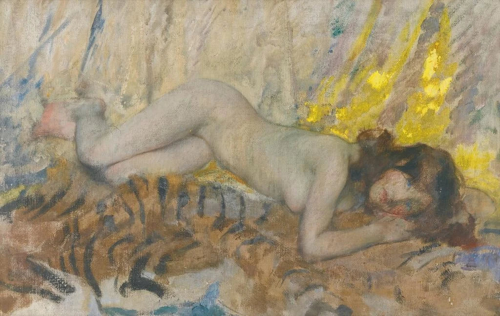 Nu sur une peau de tigre : une célébration de la beauté féminine