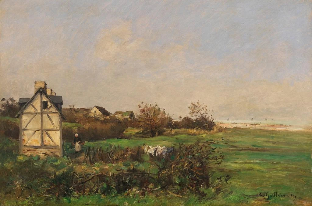 Paysage avec maison à colombages et paysanne - Antoine Guillemet