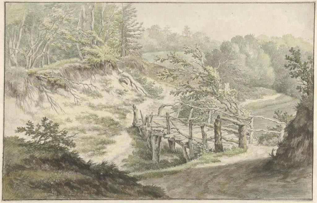 Paysage de dunes avec pont en bois - Willem Uppink