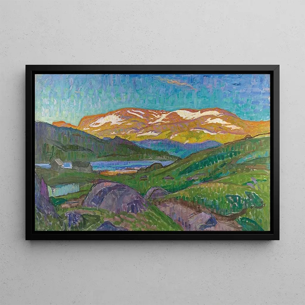 La reproduction du "Paysage de Gjendesheim" est une pièce décorative idéale pour divers espaces, que ce soit dans un salon, un bureau ou une chambre. Sa qualité d'impression garantit une fidélité aux couleurs et aux détails de l'œuvre originale, tout en apportant une touche d'élégance à votre intérieur. Ce tableau invite à la contemplation et à la rêverie, offrant un point focal apaisant qui enrichit l'ambiance de votre espace de vie. L'attrait esthétique de cette toile en fait un choix parfait pour ceux qui apprécient l'art et la nature.