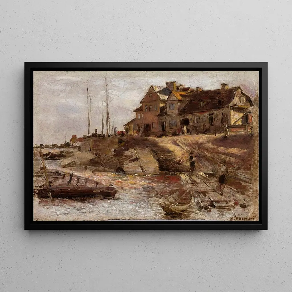 Tässä elävässä luonnoksessa Aleksander Gierymskin Port à Solec paljastuu kuin elävä maalaus, jossa valo tanssii rauhallisten vesien päällä. Pastellivärit sekoittuvat harmonisesti, luoden tunnelman, joka huokuu tyyneyttä. Taiteilijan tekniikka, joka leikkii sävyillä ja tekstuureilla, vangitsee tämän rauhallisen sataman olemuksen. Laivojen siluetit, hienovaraisesti luonnostellut, lisäävät kokonaisuuteen runollisen ulottuvuuden ja kutsuvat katsojan sukeltamaan tähän hetkeen, joka on jäänyt leijumaan taivaan ja meren välille.