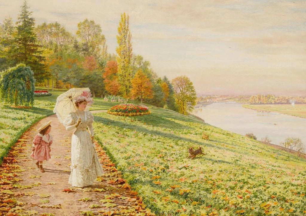 La reproduction de "Promenade d'automne" nous plonge dans un tableau vibrant de couleurs chaudes et chatoyantes. Marie-François Firmin-Girard capture avec brio l’essence de l’automne, où les feuilles dorées et rouges tombent doucement des arbres, créant un tapis coloré sur le sol. La lumière douce et diffuse illumine la scène, accentuant les nuances de chaque feuillage. Ce tableau évoque une atmosphère de mélancolie douce, invitant le spectateur à se promener dans ce paysage enchanteur, à la recherche de la beauté éphémère de la nature.