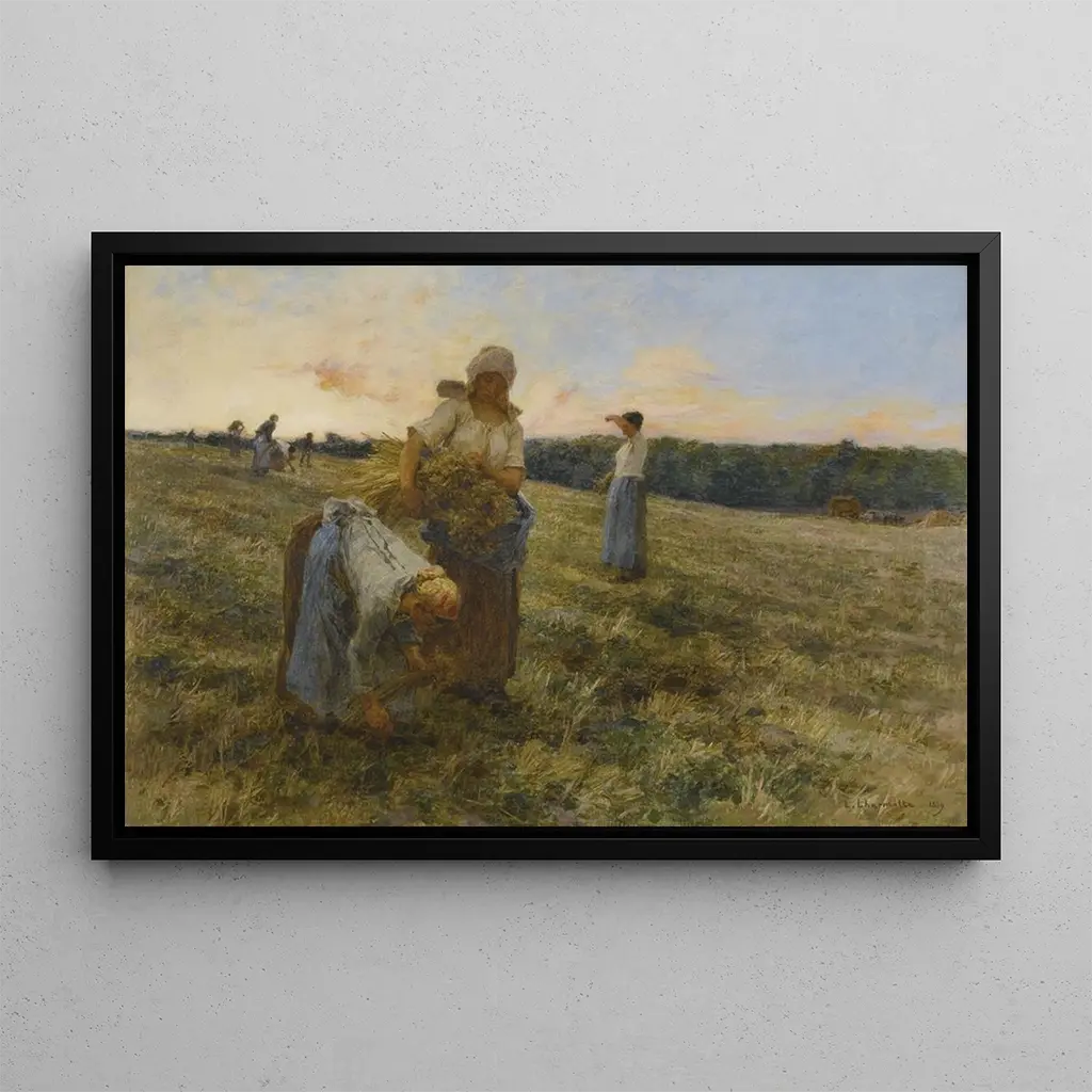 Glaneuses le soir : maisema maaseudun elämästä, täynnä rauhaa Kohteessa "Glaneuses le soir" Léon Augustin Lhermitte kuljettaa meidät bucoliseen kohtaukseen, jossa naiset, taakan alla kumarassa, keräävät sadonkorjuun jälkeen jääneet viljan tähkät. Lämmintä väripalettia hallitsevat kultaiset ja maanläheiset sävyt, jotka herättävät auringonlaskun lempeän tunnelman. Lhermitten tekniikka, joka yhdistää realismia ja impressionismia, luo rauhallisen ja mietiskelevän ilmapiirin tähän teokseen. Kasvojen ja vaatteiden yksityiskohtainen kuvaus kertoo syvää kunnioitusta maaseudun elämää kohtaan, kun taas pehmeä ilta-valo kietoo kohtauksen lähes taianomaiseen auraan. Léon Augustin Lhermitte : todistaja 1800-luvun lopun maaseudun elämästä Léon Augustin Lhermitte, syntynyt vuonna 1844, on ranskalainen taiteilija, joka tunnetaan maaseudun elämän kuvausten mestarina. Hän opiskeli Pariisin taideakatemiassa ja ammensi vaikutteita menneiltä mestareilta, kehittäen samalla oman tyylinsä, joka yhdistää realismia ja impressionismia. Hänen teoksensa keskittyvät usein maanviljelijöihin ja heidän arkeensa, heijastaen yksinkertaisen elämän taisteluita ja iloja. 1800-luvun lopulla, jolloin ranskalainen yhteiskunta koki syviä muutoksia, Lhermitte onnistui vangitsemaan näiden hetkien katoavan olemuksen, tehden hänestä aikansa merkittävän taiteilijan. Monipuolinen koristeellinen taidegrafiikka, jolla on useita etuja "Glaneuses le soir" -taidegrafiikan reproduktio on keskeinen teos, joka kaunistaa sisustustasi, olipa kyseessä olohuone, toimisto tai makuuhuone. Sen tulostuslaatu ja uskollisuus alkuperäiselle teokselle tekevät siitä ihanteellisen valinnan taiteen ystäville. Sisällyttämällä tämän taulun sisustukseesi lisäät eleganssia ja rauhaa tilaan. Tämä lämmin ja nostalginen taidegrafiikan tunnelma kutsuu mietiskelyyn, luoden rauhoittavan ja inspiroivan ympäristön kaikille, jotka sitä katsovat.