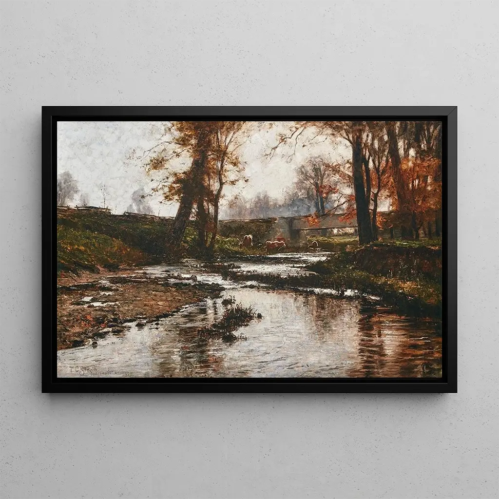 Dans "Ruisseau agréable", Theodore Clement Steele nous transporte dans un paysage serein où la nature s'exprime avec éclat. Les couleurs vives et les nuances délicates de vert et de bleu se mêlent harmonieusement, évoquant la fraîcheur d'un matin printanier. La technique impressionniste de Steele, avec ses coups de pinceau fluides, crée une atmosphère de tranquillité, invitant le spectateur à s'immerger dans ce tableau. La lumière joue un rôle essentiel, illuminant le ruisseau et les feuillages environnants, tandis que le mouvement de l'eau apporte une dynamique apaisante à l'ensemble.