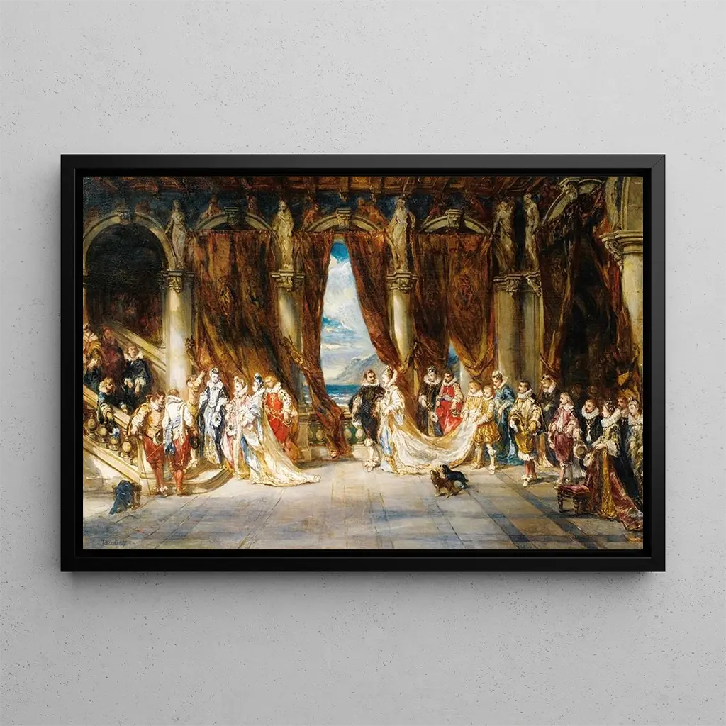 Tanssiaiset: tanssi eleganssin sydämessä Tässä taidegrafiikka- uudelleenpainoksessa Eugène Isabey vangitsee hienostuneen illan tunnelman, jossa arvokkuus ja keveys sekoittuvat eloisaan ilmapiiriin. Hahmot, pukuloistossaan, näyttävät leijuvan tanssilattialla, kun taas kirkkaat värit ja hienostuneet yksityiskohdat luovat juhlavan tunnelman. Vesiväritekniikka, joka on käytetty mestarillisesti, herättää eloon jokaisen liikkeen, jokaisen hymyn ja kutsuu katsojan uppoutumaan tähän elävään tauluun. Valojen loisto ja sävyjen pehmeys viittaavat hetkeen, joka on pysäytetty ajassa, juhlaan kauneudesta ja elämän taiteesta. Eugène Isabey: XIX-luvun loistojen todistaja Eugène Isabey, ranskalainen taiteilija ja vesiväri- mestari XIX-luvulta, tunnetaan kyvystään ikuistaa arkipäivän kohtauksia ja historiallisia tapahtumia ainutlaatuisella herkkyydellä. Romantismin vaikutuksesta hän sijoittuu aikaan, jolloin taide heijastaa yhteiskunnan tapoja ja pyrkimyksiä. Hänen teoksensa, usein melankolian ja runouden täyttämiä, todistavat tarkkaavaisuudesta ihmisluontoa ja sosiaalisia vuorovaikutuksia kohtaan. Luomuksissaan Isabey on onnistunut vangitsemaan aikansa hengen, tehden hänestä merkittävän taiteilijan aikakaudellaan. Monipuolinen koristeellinen taidegrafiikka-ostos Tanssiaiset- uudelleenpainos on ihanteellinen koriste-esine, joka rikastuttaa sisustustasi, olipa kyseessä olohuone, toimisto tai makuuhuone. Sen tulostuslaatu ja alkuperäisten värien uskollisuus tekevät tästä taidegrafiikasta todellisen esteettisen lisän. Ripustamalla sen seinillesi, tuot tilaan eleganssia ja hienostuneisuutta, samalla herättäen vieraidesi ihailua. Tämä taidegrafiikka, sekä taiteellinen että inspiroiva, kutsuu unelmoimaan ja mietiskelemään, luoden lämpimän ja kutsuvan ilmapiirin.