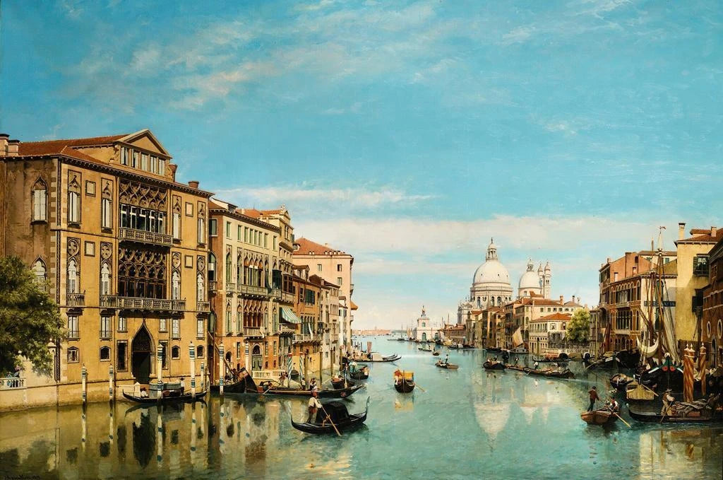 Jean-Baptiste van Moer, 1800-luvulla aktiivinen, tunnetaan kaupunkimaisemista, jotka korostavat eurooppalaisten kaupunkien kauneutta, ja Le Grand Canal Venise on yksi esimerkki tästä. Romanttismin vaikutuksesta hän onnistuu vangitsemaan Venetsian olemuksen, kaupungin, joka on rikas historiasta ja kulttuurista. Hänen teoksensa ovat usein täynnä runollista tunnelmaa, jossa valo ja vesi näyttelevät keskeistä roolia. Van Moer on onnistunut ikuistamaan arkipäivän kohtauksia, kunnioittaen venetsialaisen arkkitehtuurin loistoa ja sen ainutlaatuista ilmapiiriä.