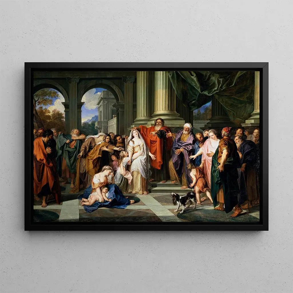 Tämä taidegrafiikka « Suzanne syytettynä aviorikoksesta » on koristeellinen kappale, joka rikastuttaa minkä tahansa tilan, olipa kyseessä olohuone, toimisto tai makuuhuone. Sen tulostuslaatu ja uskollisuus alkuperäiselle teokselle tekevät siitä ihanteellisen valinnan klassisen taiteen harrastajille. Dynaamisen tunnelman ja elävien värien ansiosta tämä taulu kiinnittää huomion ja herättää keskusteluja. Sisustukseesi lisäämällä tämän taulun tuot sisään historiaa ja kulttuuria, samalla juhlistaen Antoine Coypelin lahjakkuutta.
