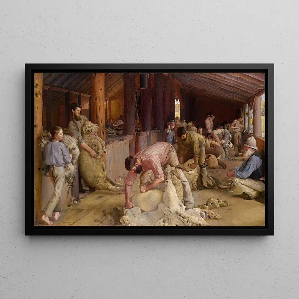 Tondre les moutons : une scène bucolique empreinte de sérénité Dans cette œuvre emblématique, Tom Roberts capture l'essence de la vie rurale australienne à travers une scène de tonte de moutons. Les couleurs chaudes et terreuses, mêlées à des touches de vert, évoquent la beauté des paysages naturels. La technique impressionniste de Roberts se manifeste par des coups de pinceau dynamiques, qui insufflent une atmosphère vivante à la toile. Les personnages, concentrés sur leur tâche, sont baignés dans une lumière douce, créant une harmonie entre l'homme et la nature. Cette reproduction de "Tondre les moutons" invite à une contemplation paisible, où chaque détail raconte une histoire de labeur et de tradition. Tom Roberts : pionnier de l'art australien et de l'impressionnisme Tom Roberts, né en 1856 à Londres, est considéré comme l'un des fondateurs de l'impressionnisme australien. Établi en Australie, il s'inspire des paysages et de la vie quotidienne de son nouveau pays. Ses œuvres reflètent un profond respect pour la culture et les traditions locales. Roberts a été influencé par les maîtres européens, mais il a su développer un style unique qui met en valeur la lumière et la couleur. Son engagement dans le mouvement artistique australien a été déterminant pour l'émergence d'une identité artistique nationale. La reproduction de "Tondre les moutons" témoigne de son habileté à capturer des moments authentiques de la vie australienne. Une acquisition décorative aux multiples atouts La reproduction de "Tondre les moutons" est une pièce décorative qui s'intègre parfaitement dans divers espaces, que ce soit un salon, un bureau ou une chambre. Sa qualité de reproduction garantit une fidélité aux couleurs et aux détails de l'œuvre originale, permettant d'apprécier pleinement le talent de Tom Roberts. Ce tableau apporte une touche de chaleur et de convivialité à votre intérieur, tout en suscitant des conversations autour de l'art et de la culture australienne. Avec son attrait esthétique indéniable, cette toile devient un élément central de votre décoration, invitant à la rêverie et à l'évasion.