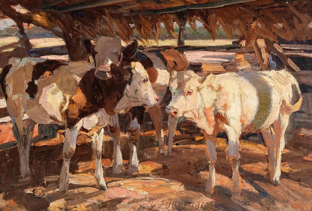 Trois Veaux à la Mangeoire - Heinrich von Zügel