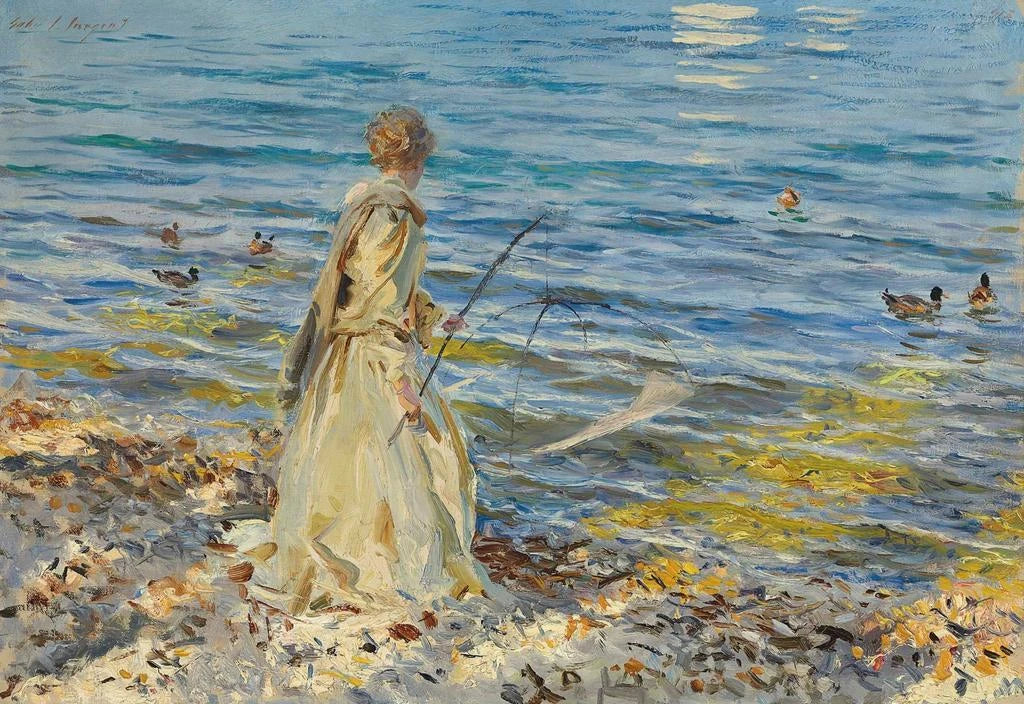John Singer Sargent, syntynyt vuonna 1856, tunnetaan yhtenä aikansa suurimmista muotokuvien taidegrafiikan mestareista. Pariisissa opiskellut, hän sai vaikutteita impressionisteilta, mutta kehitti oman ainutlaatuisen tyylinsä, joka yhdistää realismia ja impressionismia. Sargent matkusti Euroopassa ja Yhdysvalloissa, tallentaen arkipäivän kohtauksia ja vaikutusvaltaisten henkilöiden muotokuvia. Fille pêchant, vaikka vähemmän tunnettu kuin hänen muotokuvansa, kuvaa hänen kykyään vangita ohikiitäviä hetkiä ja luonnon kauneutta. Tämä teos todistaa hänen taitoaan leikkiä valolla ja varjolla, mikä on olennainen osa hänen työtään.