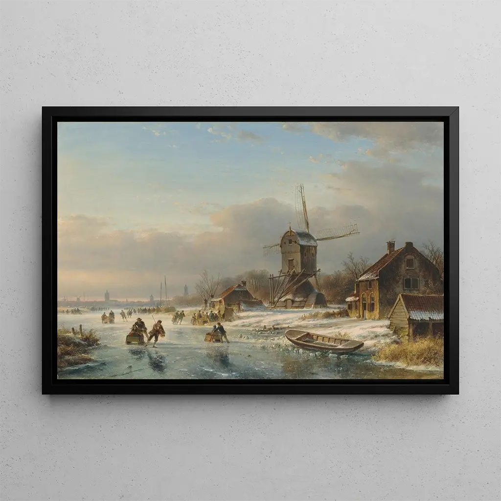 Un paysage d'hiver : une sérénité glacée Dans cette œuvre, Lodewijk Johannes Kleijn capture l'essence d'un paysage hivernal, où la neige recouvre délicatement le sol et les arbres. Les teintes froides de bleu et de blanc dominent la composition, créant une atmosphère paisible et contemplative. La technique de l'artiste, mêlant huile et pinceau fin, donne vie à des détails subtils, comme les ombres projetées par le soleil d'hiver. Ce tableau évoque une invitation à la tranquillité, où le regard se perd dans l'immensité d'un paysage silencieux, presque magique. Lodewijk Johannes Kleijn : un maître du paysage néerlandais Lodewijk Johannes Kleijn, actif au XIXe siècle, est reconnu pour ses paysages qui reflètent la beauté naturelle des Pays-Bas. Influencé par l'école de La Haye, il a su allier réalisme et poésie dans ses œuvres. Sa carrière, bien que moins connue que celle de certains contemporains, a marqué l'histoire de l'art néerlandais par sa capacité à capturer les nuances de la lumière et de la nature. Kleijn a également été un témoin des changements sociétaux de son époque, intégrant ces éléments dans ses compositions, ce qui confère à son travail une profondeur historique. Une acquisition décorative aux multiples atouts La reproduction du tableau Un paysage d'hiver est une pièce décorative idéale pour apporter une touche de sérénité à votre intérieur. Que ce soit dans un salon, un bureau ou une chambre, cette toile évoque une ambiance apaisante et hivernale. Sa qualité de reproduction garantit une fidélité aux détails originaux, permettant de profiter de l'esthétique de Kleijn dans votre espace. Avec son attrait visuel, cette œuvre se marie parfaitement avec divers styles de décoration, offrant une opportunité unique d'enrichir votre environnement avec une touche d'art classique.