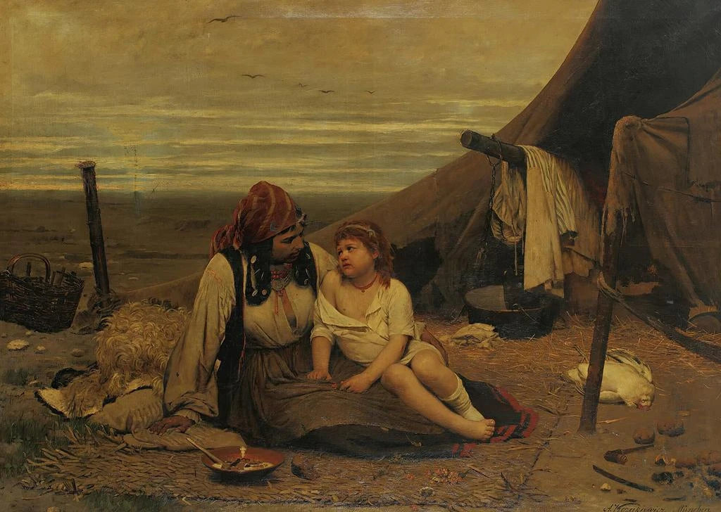 Antoni Kozakiewicz, peintre polonais du XIXe siècle, est souvent associé au mouvement romantique, qui valorise l’émotion et l’individualité. Influencé par les traditions artistiques de son époque, il s’est spécialisé dans la représentation de scènes de la vie quotidienne, mettant en avant des sujets souvent marginalisés. Sa carrière, bien que moins connue que celle de ses contemporains, témoigne d’un profond respect pour les cultures qu’il dépeint. "Une famille gitane" illustre parfaitement son intérêt pour les modes de vie alternatifs et son désir de capturer l’âme humaine à travers l’art, faisant de lui un acteur important de la scène artistique de son temps.