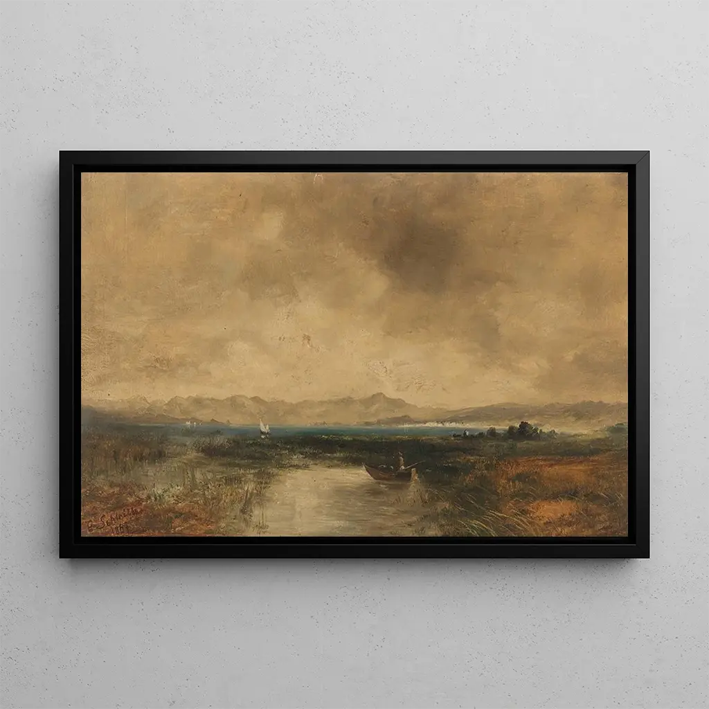 Vue du Chiemsee : un panorama enchanteur des Alpes bavaroises La toile "Vue du Chiemsee" d'Eduard Schleich l'Ancien présente un paysage idyllique où le lac Chiemsee se mêle harmonieusement aux majestueuses Alpes bavaroises. Les couleurs vibrantes de la nature, des verts luxuriants aux bleus profonds du lac, créent une atmosphère de tranquillité et d'émerveillement. La technique de Schleich, qui combine réalisme et impressionnisme, permet de ressentir la lumière et l'air frais de ce lieu enchanteur. Chaque élément de la composition, des reflets sur l'eau aux montagnes en arrière-plan, contribue à une expérience visuelle immersive. Eduard Schleich l'Ancien : un pionnier du paysage romantique Eduard Schleich l'Ancien, peintre allemand du XIXe siècle, est reconnu pour ses paysages qui capturent la beauté naturelle de l'Allemagne. Influencé par le romantisme, il a su traduire les émotions suscitées par la nature à travers ses œuvres. Schleich a passé une partie de sa vie à explorer les lacs et les montagnes, ce qui a profondément marqué son style. "Vue du Chiemsee" témoigne de son habileté à représenter la lumière et l'atmosphère, faisant de lui un acteur clé dans l'évolution de la peinture de paysage en Europe. Une acquisition décorative aux multiples atouts La reproduction de "Vue du Chiemsee" est un choix parfait pour apporter une touche de nature à votre décoration intérieure. Que ce soit dans un salon, un bureau ou une chambre, ce tableau évoque la paix et la sérénité. Sa qualité de reproduction assure une fidélité exceptionnelle aux couleurs et aux détails de l'œuvre originale, tout en offrant un attrait esthétique indéniable. En intégrant cette toile dans votre espace, vous créez une ambiance chaleureuse et accueillante, tout en célébrant la beauté des paysages naturels.