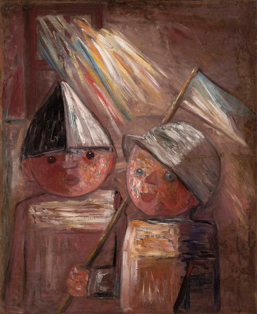 Kaksi lasta lipun kanssa - Tadeusz Makowski