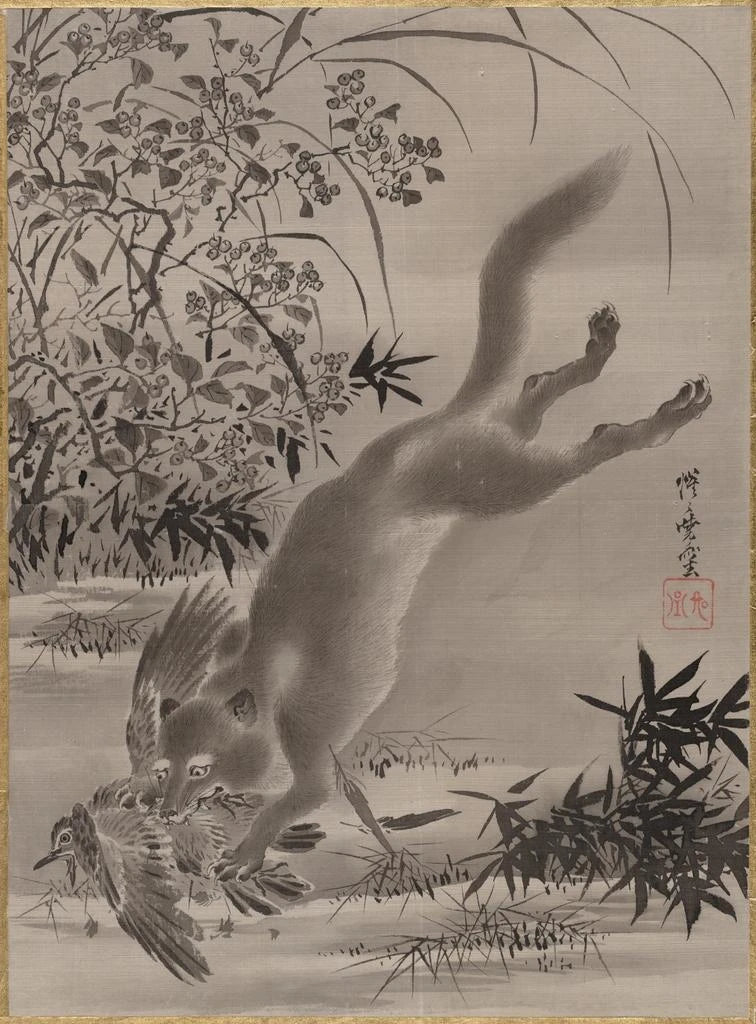 Renard attrapant un oiseau - Kawanabe Kyōsai