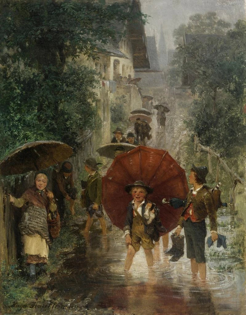 koulun jälkeen, lapset sateessa - Hugo Kauffmann