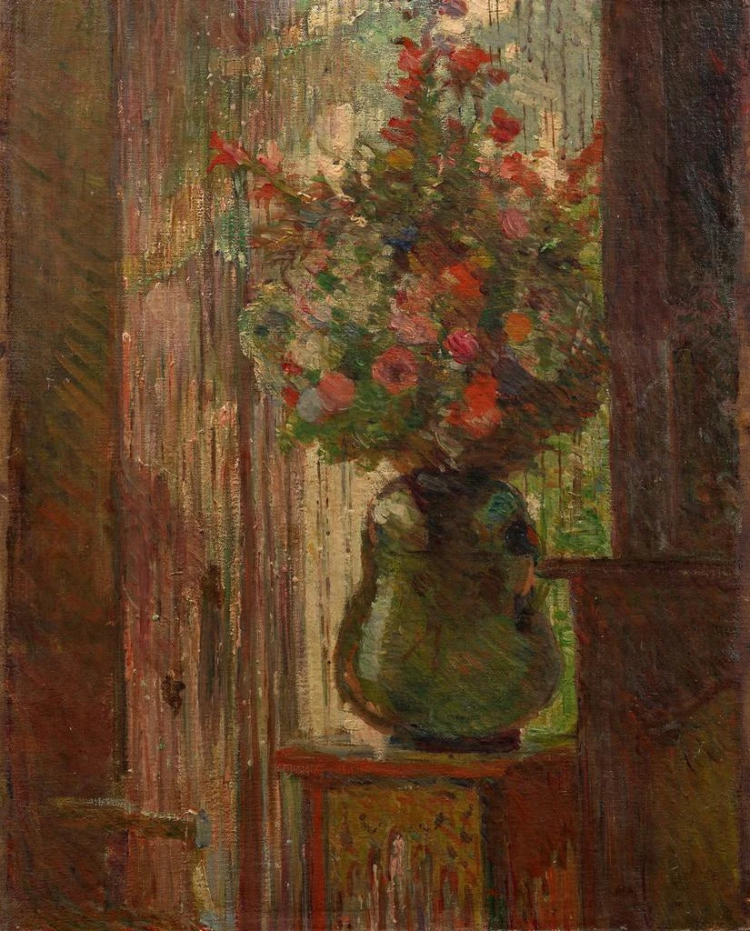 Kukkakimppu ikkunan lähellä - Marie Bracquemond