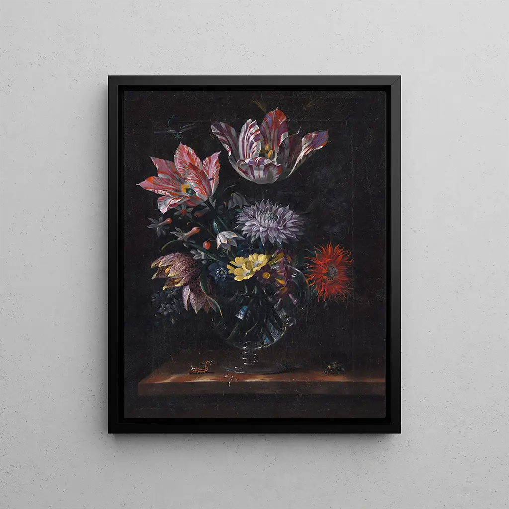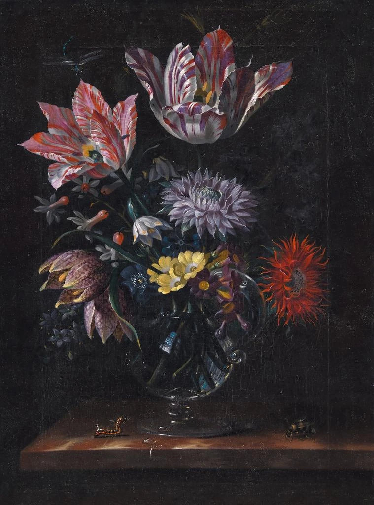Lasinen maljakko kukilla - Jacob Marrel