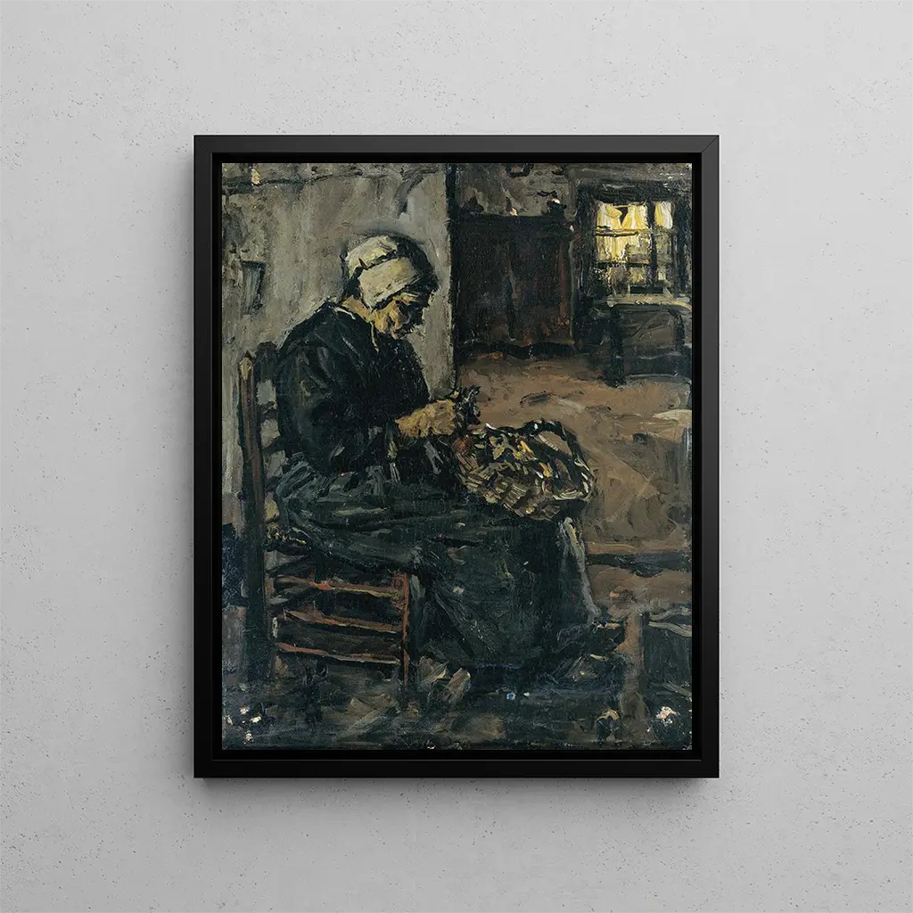 Pitäjänainen kuorimassa perunoita - Suze Robertson
