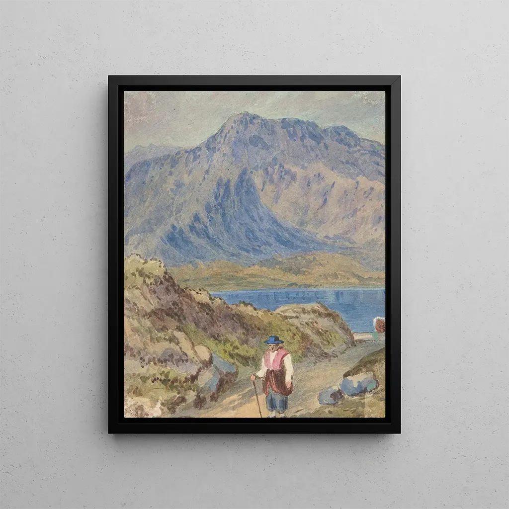 Vuoristomaisema vaeltajan kanssa - John Leech